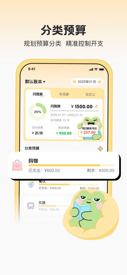 木蛙记账 - 预算资产账单管家。 欢迎来到木蛙的魔法世界,在这里小木蛙认真的为你记下每一笔开支和收入,并帮助你分析、合理规划支出,提醒你日常记账。